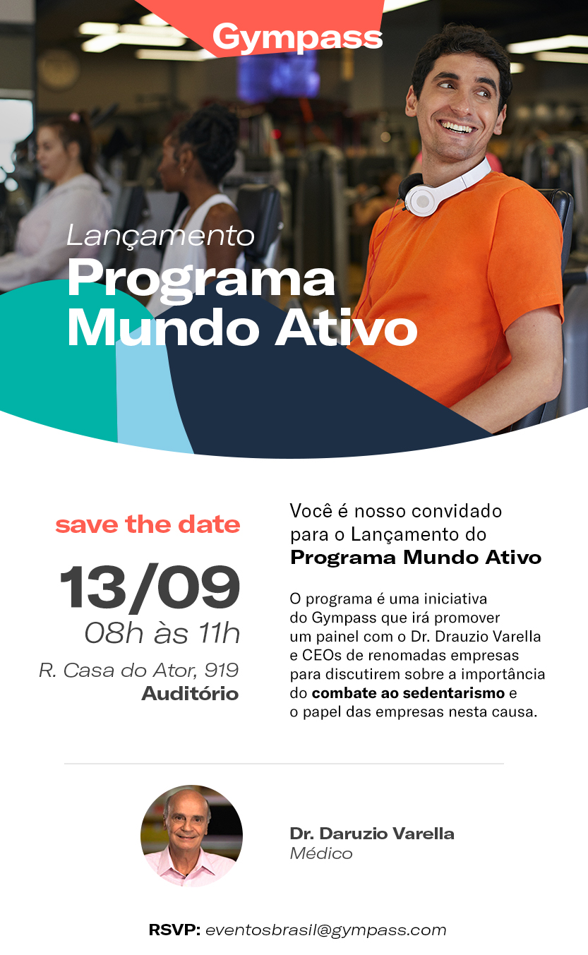 No dia 13 de setembro, os associados da ANAMT de São Paulo poderão participar do lançamento do programa Mundo Ativo, da Gympass, no escritório da empresa em São Paulo (SP). No evento, será realizado um painel com o Dr. Drauzio Varella, CEOs e gestores de RH que debaterão a importância do combate ao sedentarismo e o papel das empresas nesse contexto.